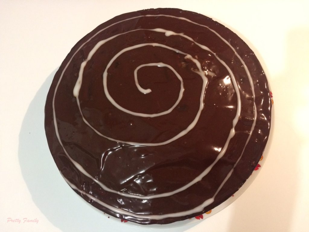 Enfin, faites une spirale avec votre glaçage blanc en partant par le milieu du gâteau. A l’aide d’un couteau, tirez des traits vers l’extérieur pour former une toile d’araignée.